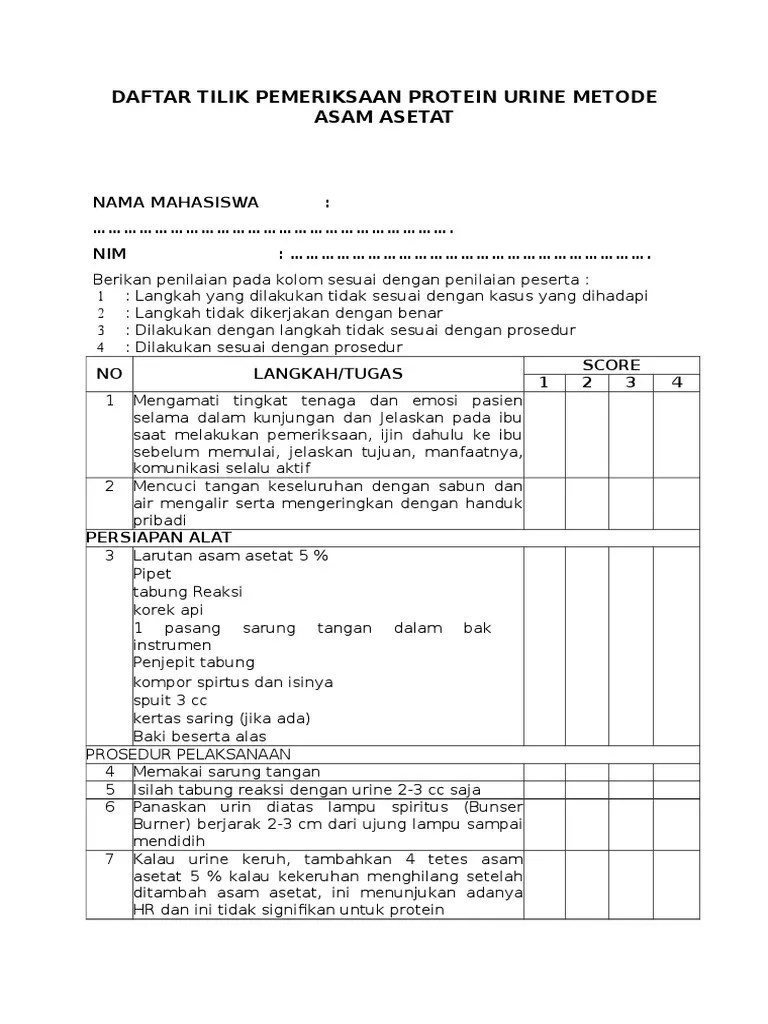 Pemeriksaan protein urine metode asam asetat 6% · masukkan sampel urine ke dalam beaker glass. Tujuan penelitian yaitu untuk menganalisis hasil pemeriksaan kadar protein urine pada ibu hamil trimester ii menggunakan metode asam asetat 6%. Asetat pada penderita diabetes mellitus tipe 2. Pemeriksaan protein urine merupakan pemeriksaan skirining untuk mengetahui fungsi ginjal. Pemeriksaan protein urine merupakan salah satu jenis pemeriksaan. · masukkan urine ke dalam tabung reaksi sebanyak 2/3 tabung. Pemeriksaan ini menggunakan asam asetat 6% atau asam. Hasil pemeriksaan protein urine pada penderita diabetes mellitus tipe 2. Pemeriksaan protein urine dengan metode asam. Merebus urine dalam suasana asam menggunakan asam asetat 6%,. Urine metode dipstick atau carik celup merupakan pemeriksaan semikuantitatif. Metode asam asetat 6% cukup peka karena . Pemeriksaan glukosa urine metode fehling a dan fehling b.